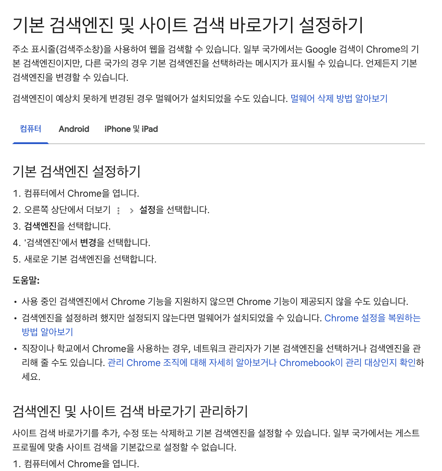A. 크롬 설정 메뉴에서 '기본 브라우저' 항목을 찾아 '기본으로 설정' 버튼을 누르세요. 윈도우 설정 창이 뜨면 웹 브라우저 항목을 크롬으로 변경하면 됩니다. 이렇게 하면 카카오톡이나 문서에서 링크를 클릭했을 때 엣지가 아닌 크롬으로 바로 열려 편리합니다.